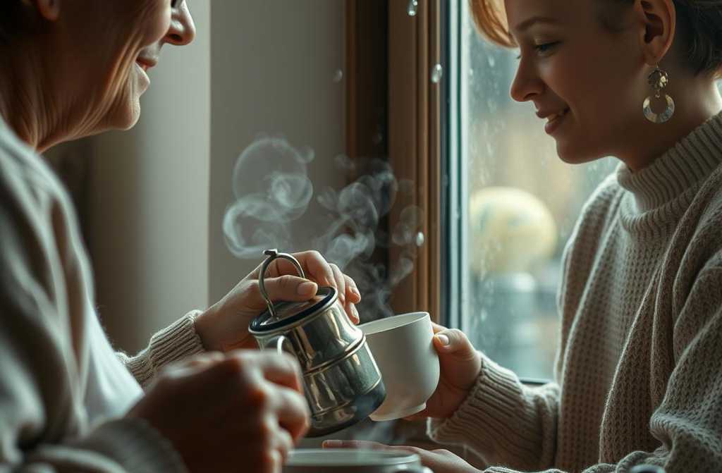Денис мовчки пройшов за нею. У кухні було затишно: на столі стояли глечики та тарілка з хлібом. Наталка налила чай собі й йому, намагаючись говорити про дрібниці про погоду за вікном, про те, що треба купити нові гумові чоботи. Хлопчик відповідав односкладово, дивився крізь неї то на запотеле вікно, то десь усередину себе.