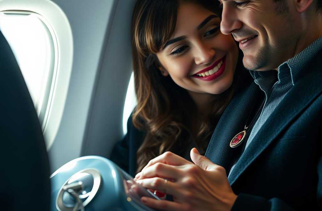 Літак піднявся в небо. У захваті Оленка випадково впустила сумку, і раптом Віктор без слів допоміг їй підняти речі.