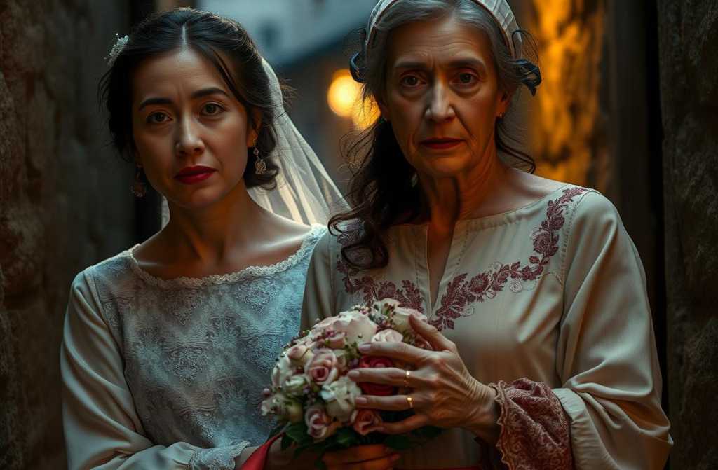 Я стояла ніби прикована. Серце билося так, що мало вистрибнути з грудей. Перш ніж я встигла оговтатися, вона широко розплющила очі, немов попереджаючи про небезпеку. Цей погляд не дозволяв сумніватися. Я схопилася за весільну сукню, руки тремтіли. У цю мить я чітко почула кроки свого нового чоловіка, що наближався до дверей.