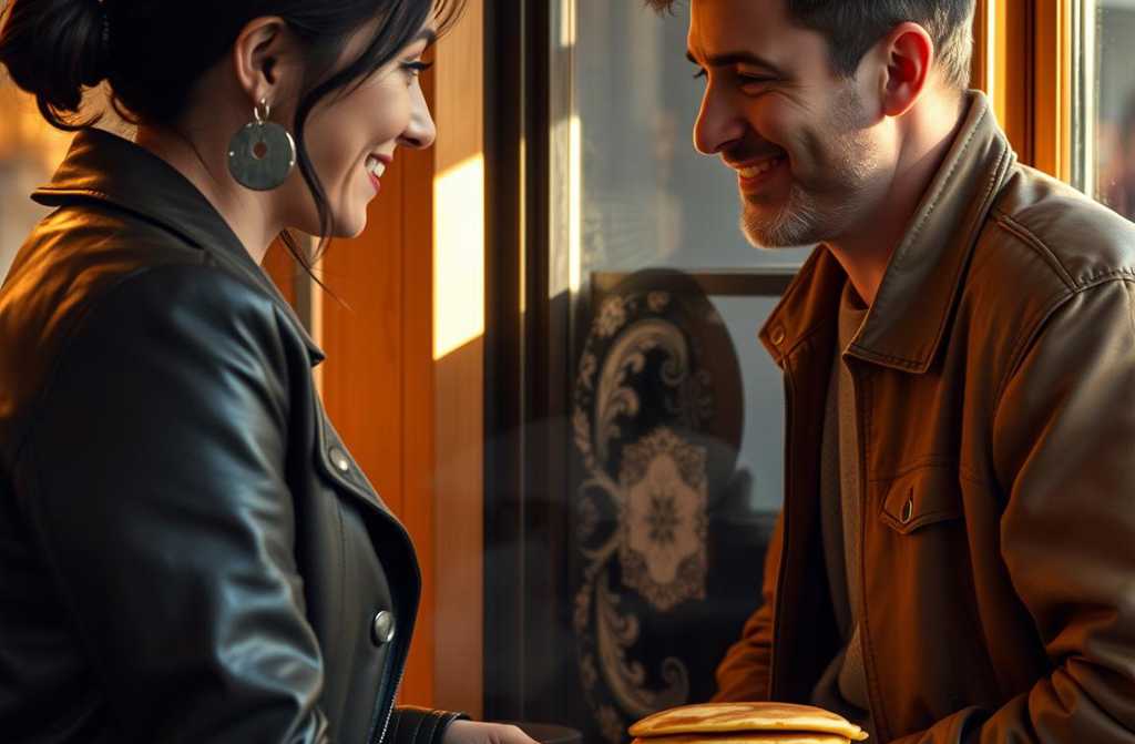 — Добрий день, — каже, виймаючи гаманець. — Дозвольте заплатити вам за сніданок.