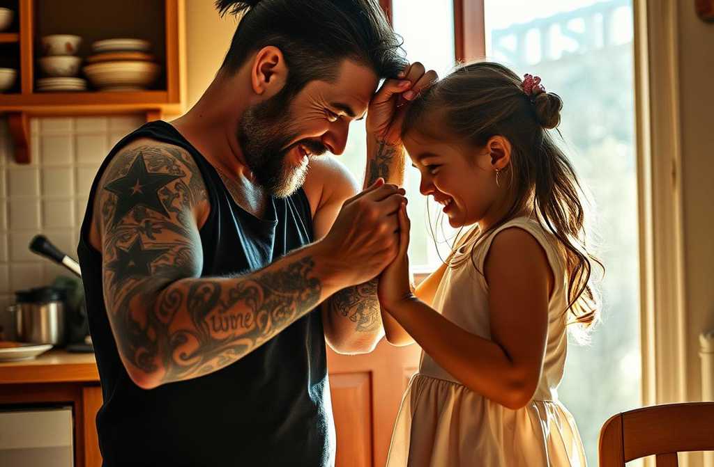 Вона підвелася на стільчику й промовила: «Дядько Іван обіймає нас щоранку. А коли нам сниться щось страшне, він спить на підлозі біля нашого ліжка. А одного разу він продав свій мотоцикл, щоб нам починити опалення. Я не знаю, яким має бути тато, але у нас він уже є.»