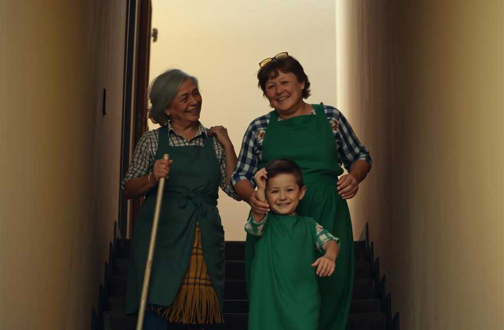 Одного холодного листопадового вечора, коли сонце швидко зникало, а повітря було різке, Тарас читав на третій сходинці, а Зоряна стирала впорсканий кут. Раптом у підїзді зявилася літня жінка в синій сукні. Вони зупинилися, не заважаючи, і слухали, як хлопчик чітко вимовляє слова, а потім плавно переходить до нових.