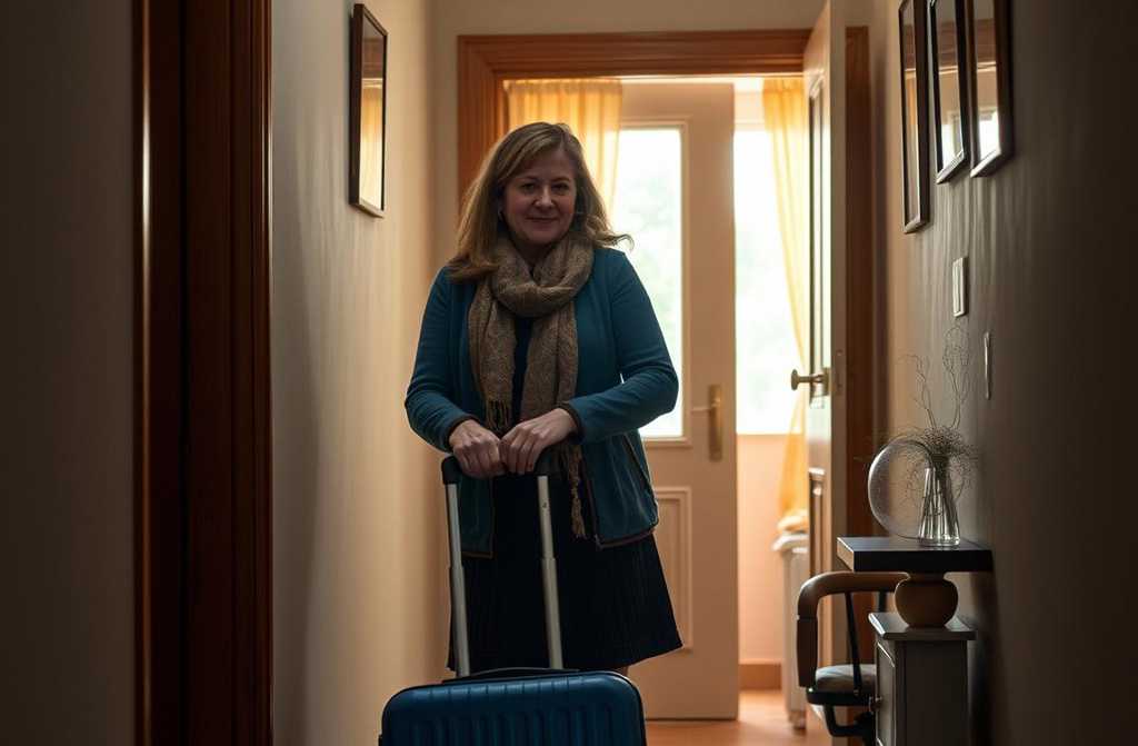 Перед своїми дверима я переставила сумки в одну руку, іншою витягнула ключі з кишені куртки і відчинила вхід. У коридорі стояв мій синій дорожній валіз, з піднятою ручкою, ніби готовий до відправлення.