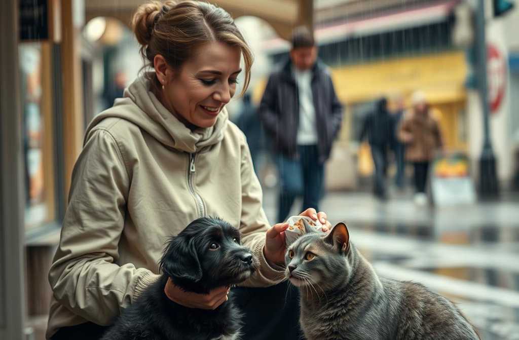 У щілині між будинками вона побачила їх: сіру, гордовіту кішку й маленьке тремтливе кошеня, що притулилося до неї. Кішка час від часу облизувала його й кидала тривожні погляди на людей.