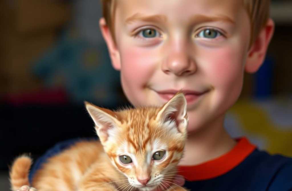 Хлопчик підняв угору рудого, як вогонь, кошеняка. Той, побачивши перед собою грізну жінку, навіть не здригнувся. А вирвавшись із рук хлопця, стрибнув на прилавок, пробіг по ньому й притулився до бруднуватого халата тітки Ганни, потершись об неї голівкою.